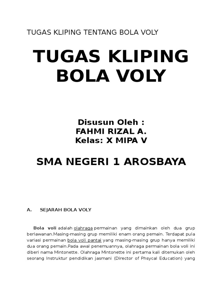 Makalah pendidikan jasmani tentang sepak bola, basket, aquatic, voli