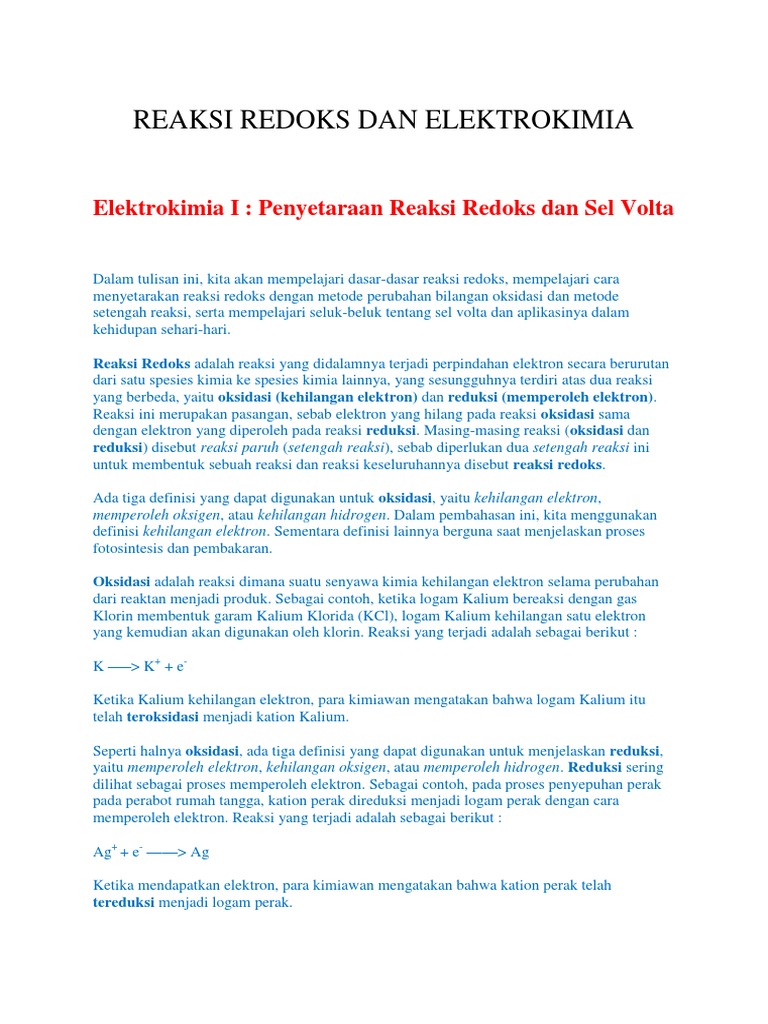 Materi Reaksi Redoks PDF PPT DOC [Lengkap]