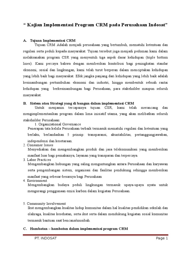 Kajian Implementasi Program CRM pada Perusahaan Indosat”